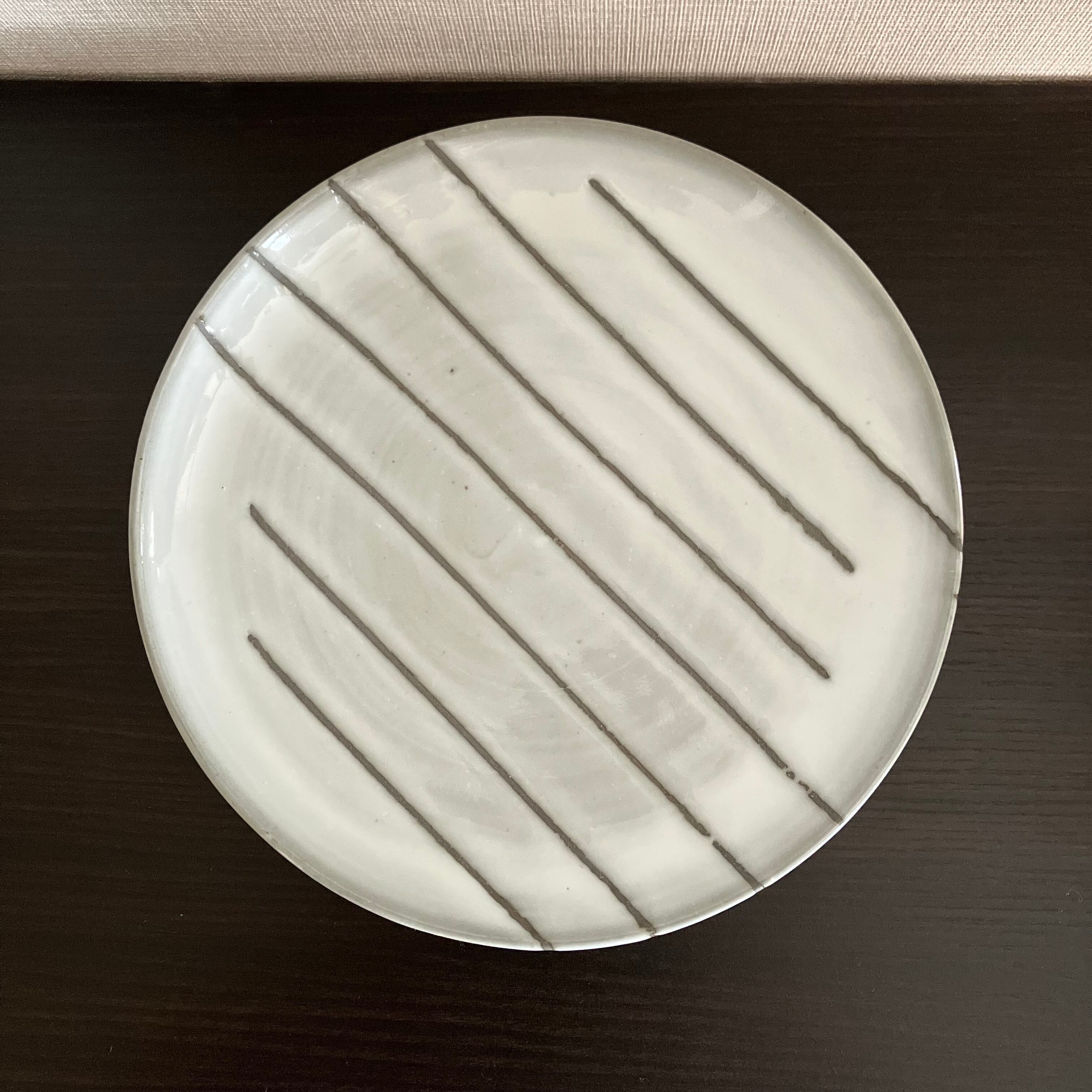 釉薬の奥に透ける線が、静かなリズムを奏でるよう。