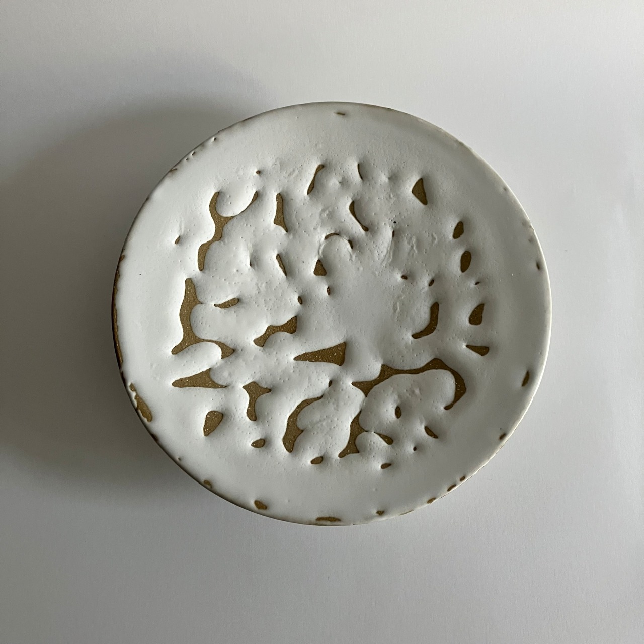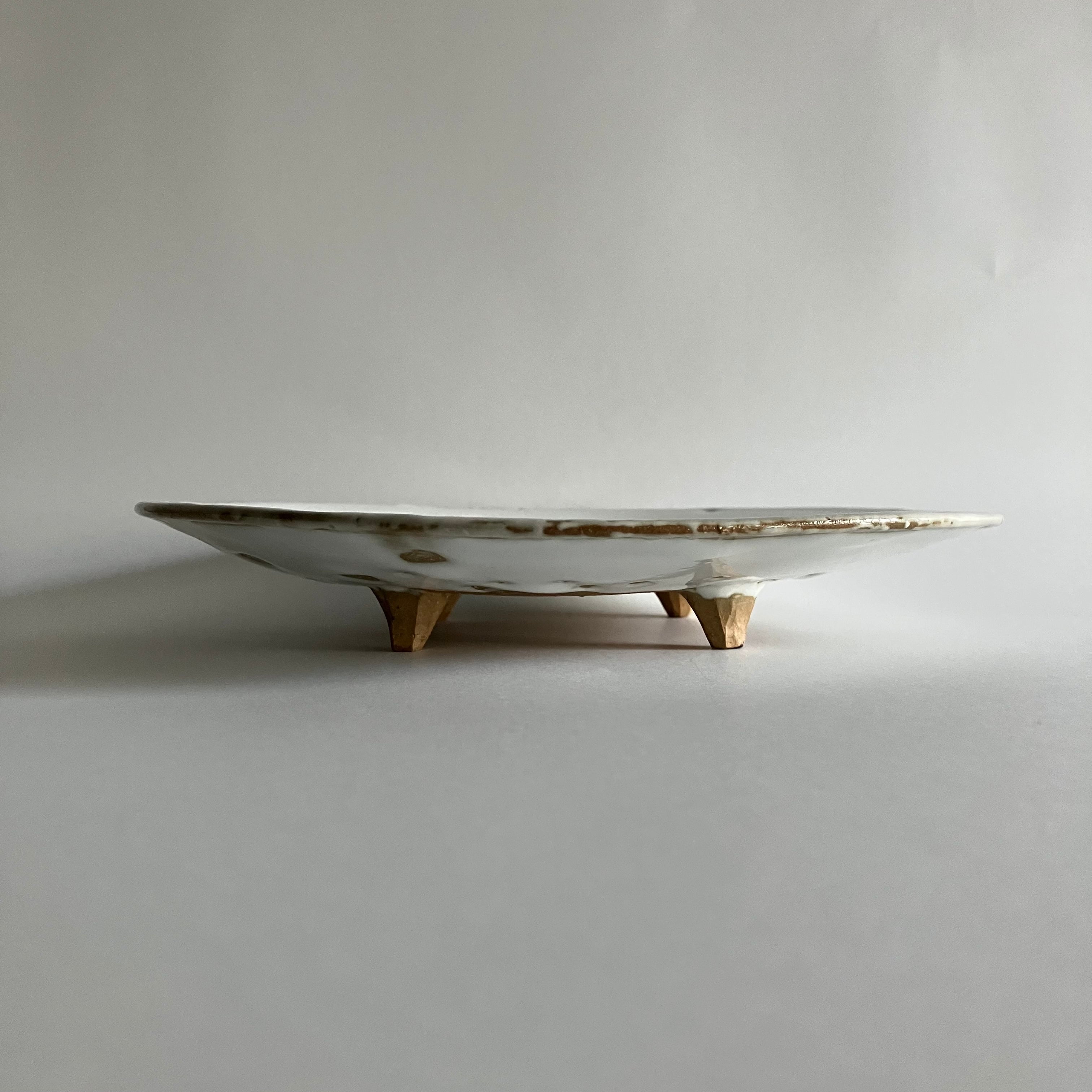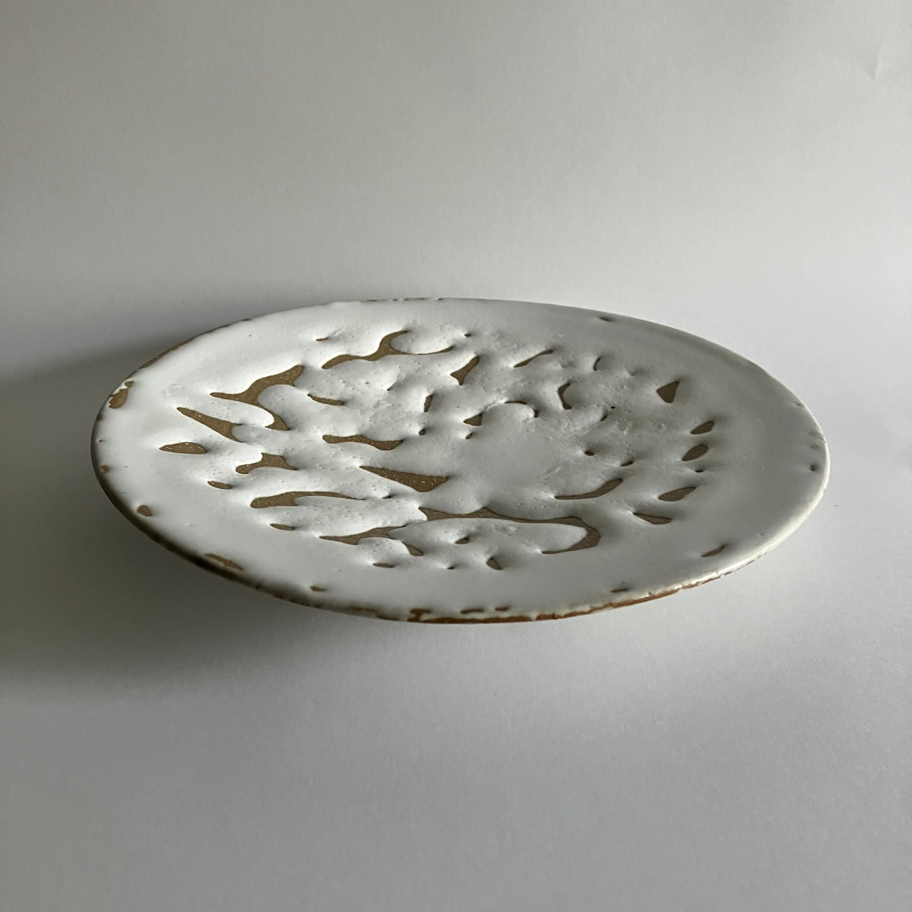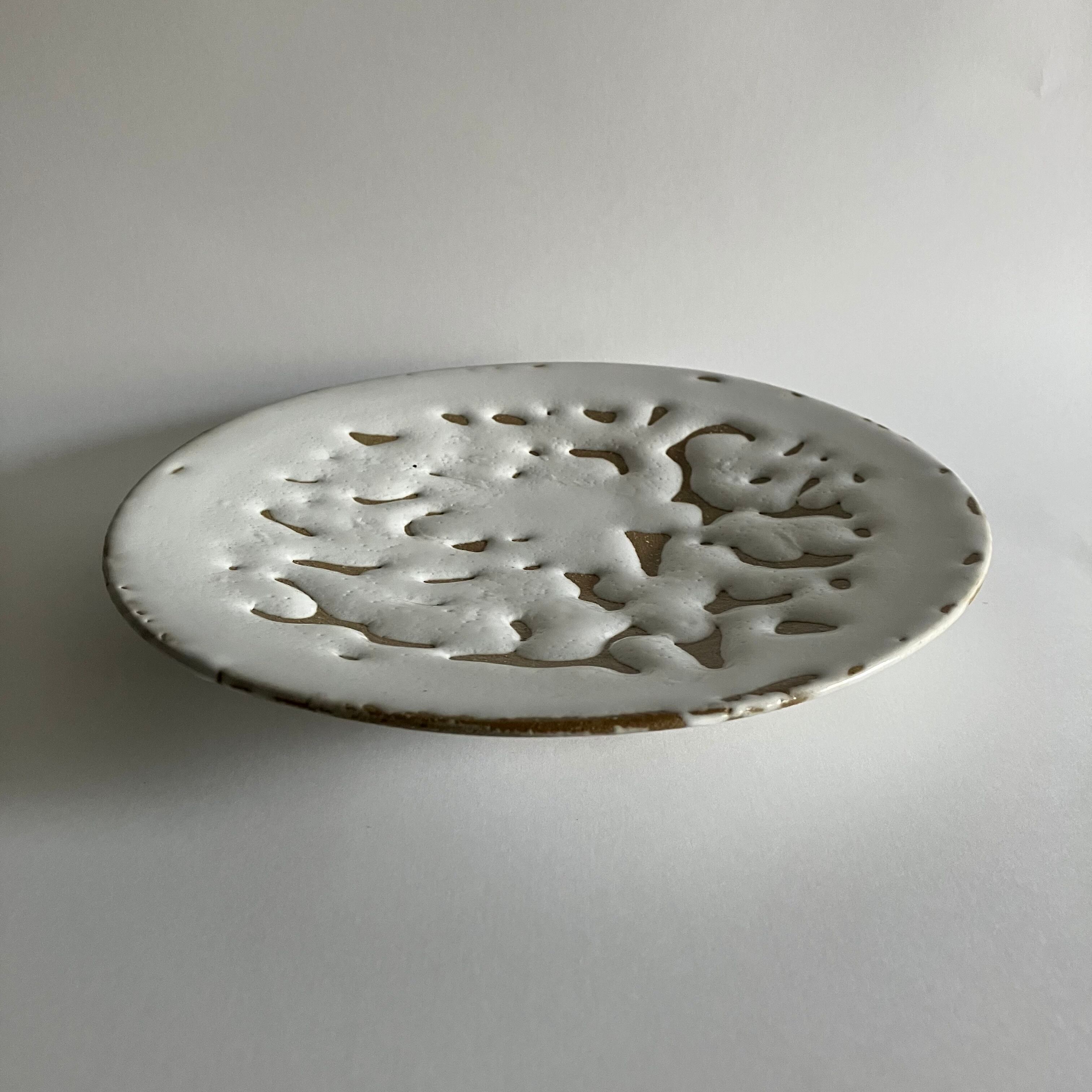 ふたつの釉薬がせめぎ合うことで生まれた、独特な表情を持つ一枚。