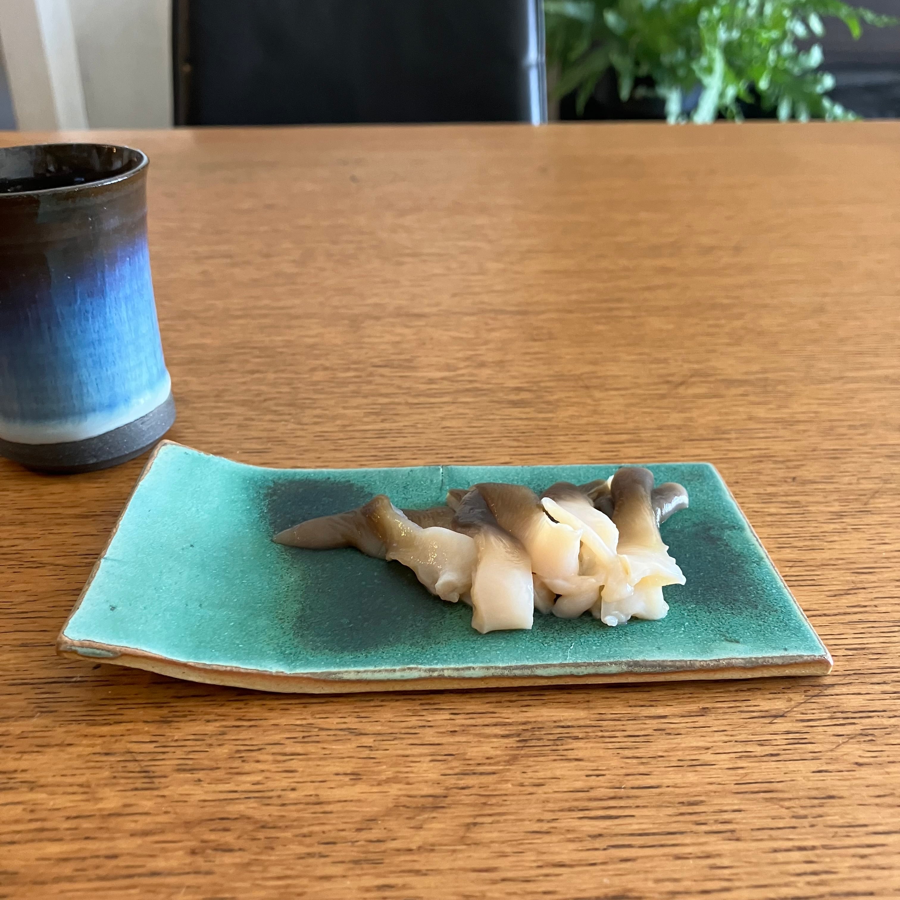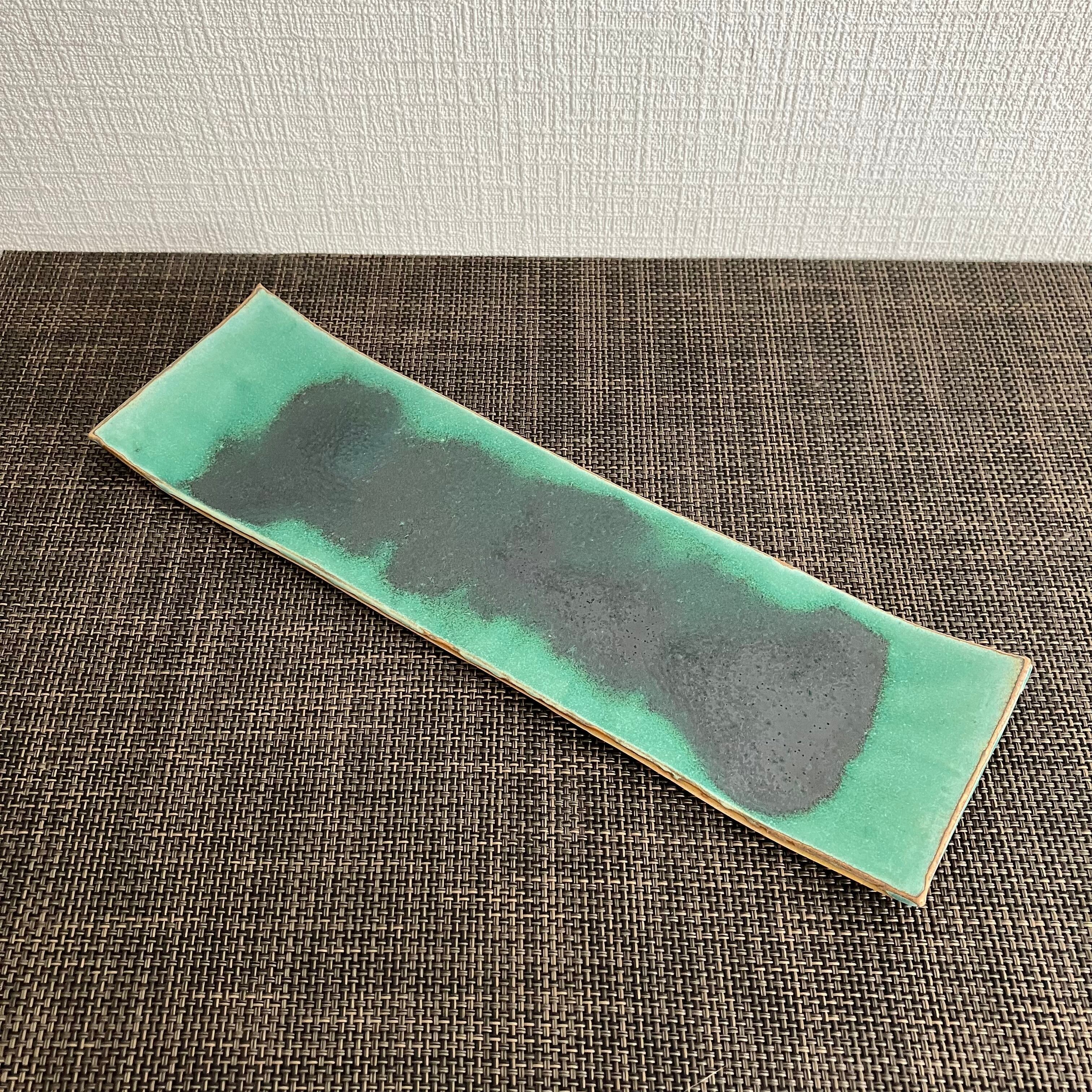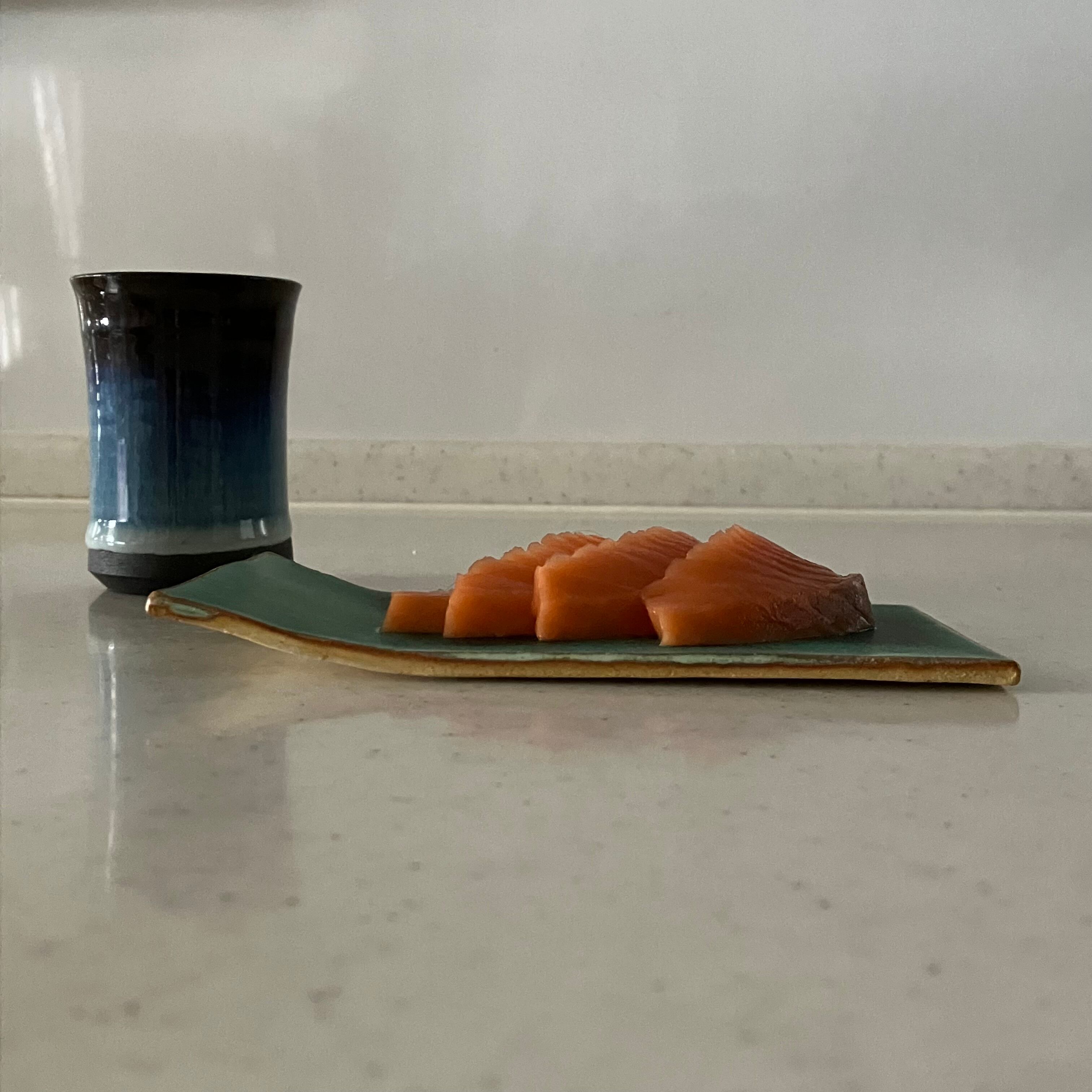 こちらの板皿はトルコブルーの明るい色で、大葉やパセリがなくても、お刺身が映えます。