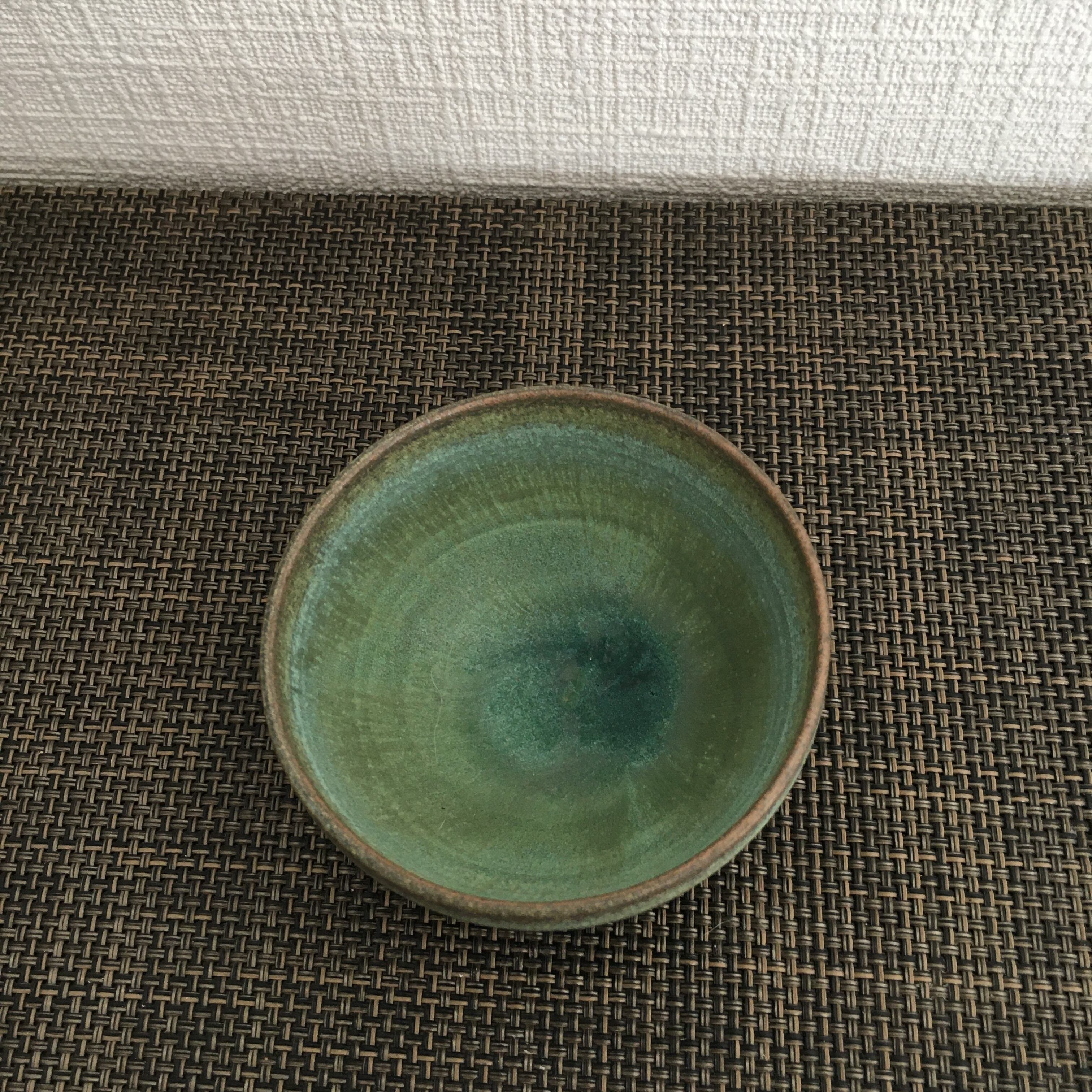 釉薬は禾目トルコ結晶釉です。 ちょっと品があります。 サイズ 直径8cm、高さ4.1cm、重さ90g